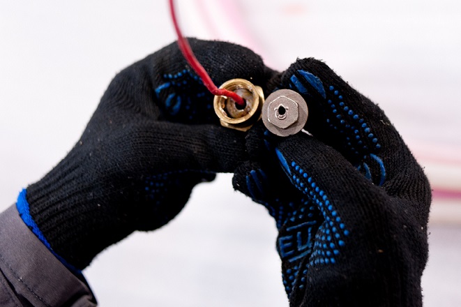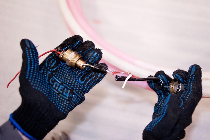4. НЕНАДЕЖНОЕ СОЕДИНЕНИЕ ПРОВОДОВ. Соединение нагревательного с холодным концом выполнено путем грубой скрутки нагревательного кабеля и холодного конца (на фото видно насколько некачественно сделана эта «кустарная» подделка).